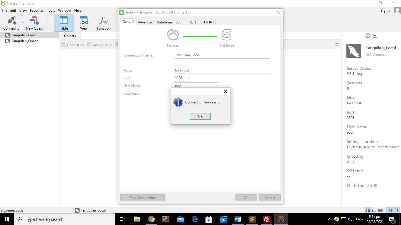 4/2/2021 7:01 AM 98861 Local connection to MySQL database using Navicat.png